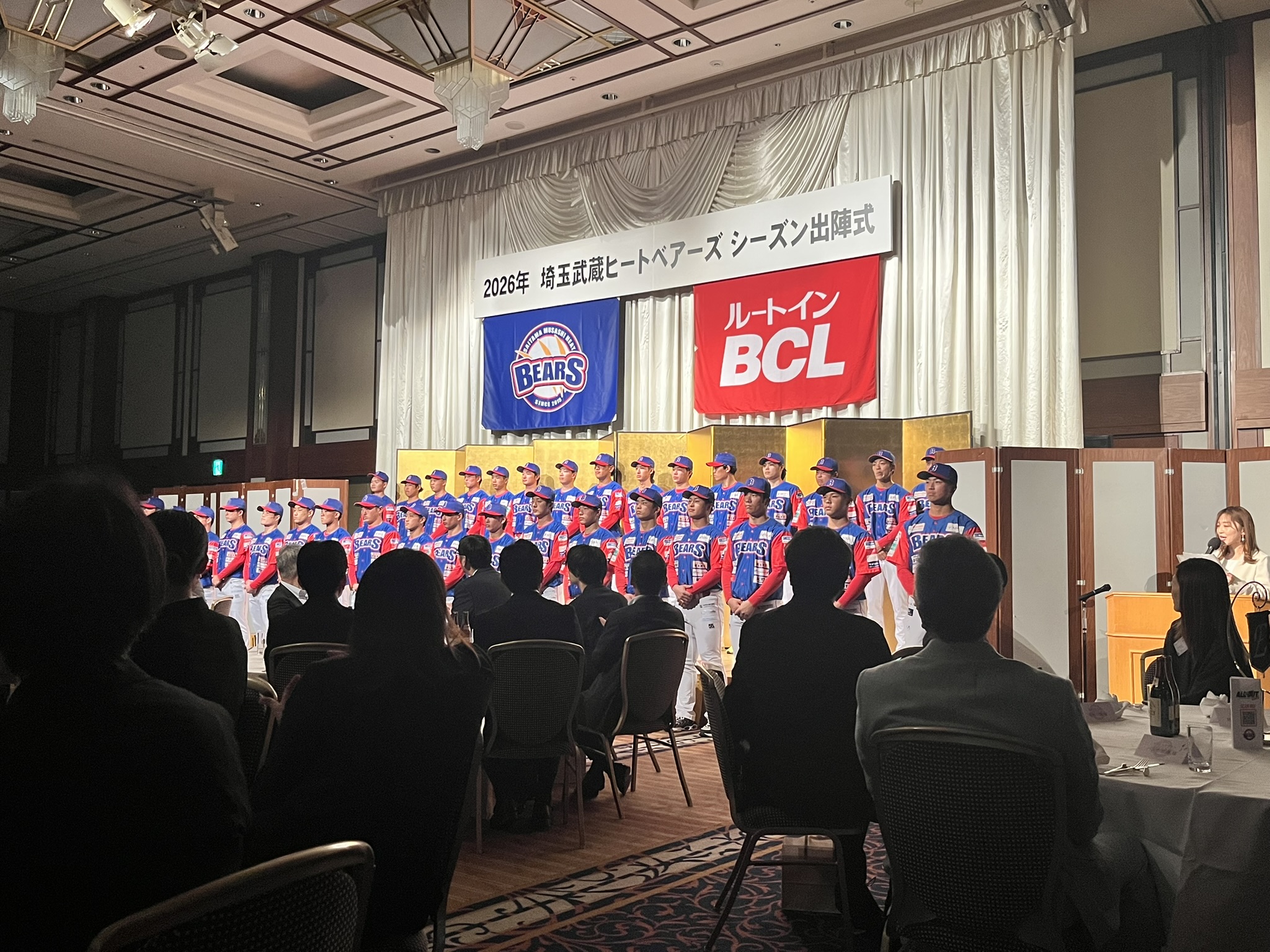 WBCが開幕したその夜。3月6日(金)さいたま市内のホテルで開催されたルートインBCリーグ West所属 埼玉武蔵ヒートベーアーズの2026年出陣式にお招き頂きました。当社では昨年より同球団の法人会員プログラムのアップデートおよび協賛企業開拓等のサポートをさせて頂いております。元MLBの田澤純一投手の復帰をはじめ、今季もNPB入りを目指す多くの若い選手の熱い挑戦が始まります。一方、応援する対象として様々なスポーツが台頭し、野球人口の減少も叫ばれます。野球を通じ埼玉県下の地域企業や自治体などの課題克服に貢献できるか。引き続き当社では選手の熱い戦いを後方支援できるよう努めてまいります。