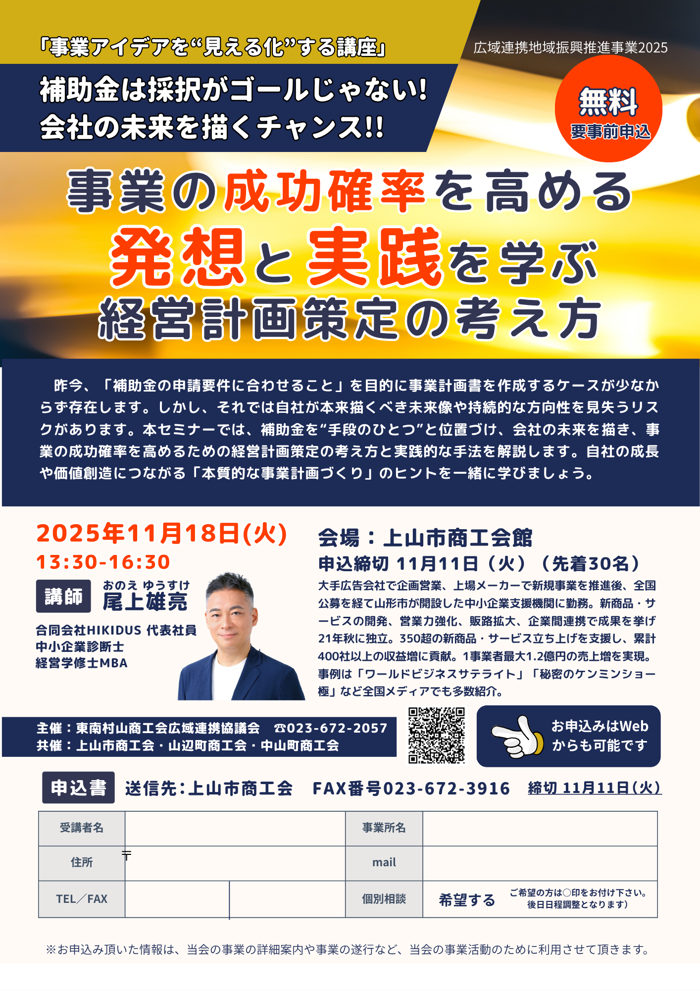 日時 2025年11月18日(火) 13:30-16:30 場所 上山市商工会館(山形県上山市南町8-21)