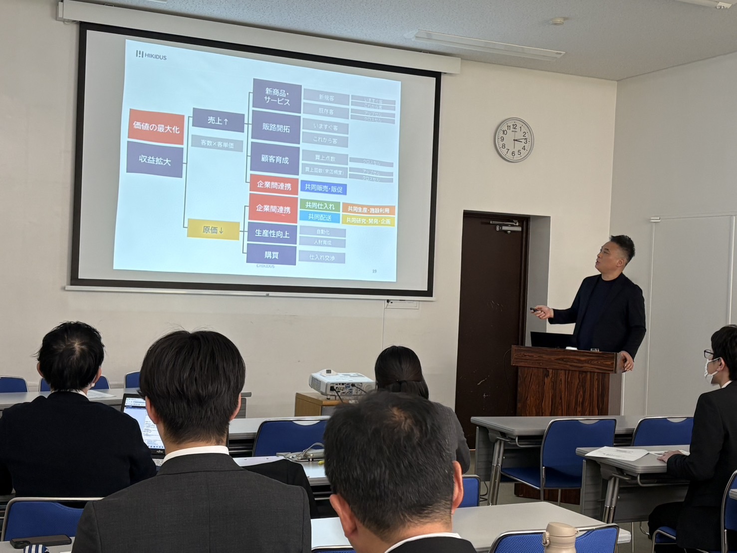 HIKIDUSでは企業研修・講演のご依頼承ります。25年10月までの実績についてはこちらからもご覧いただけます。また、「今すぐつかえるノウハウ 10年錆びないナレッジ」をコンセプトに、地域中小企業の利益創出に欠かせないテーマを毎回90分程度で簡潔に学べる機会HIKIDUS BUSINESS COLLEGE(HBC)も開催。これまで計6回開催。次回は26年春に開催予定です。